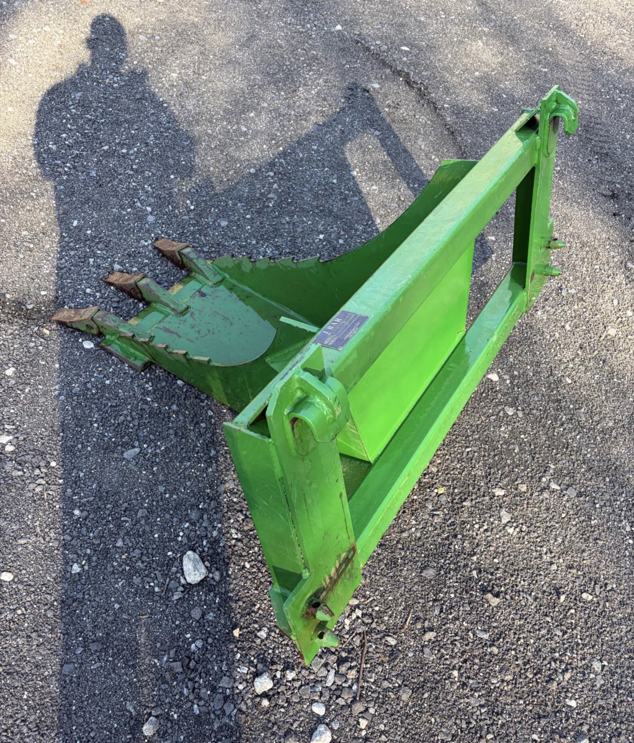 Discover the heavy-duty John Deere stump bucket in excellent condition. This durable attachment is designed for tackling tough jobs like removing stumps, cutting roots, and trenching for water lines or drainage.